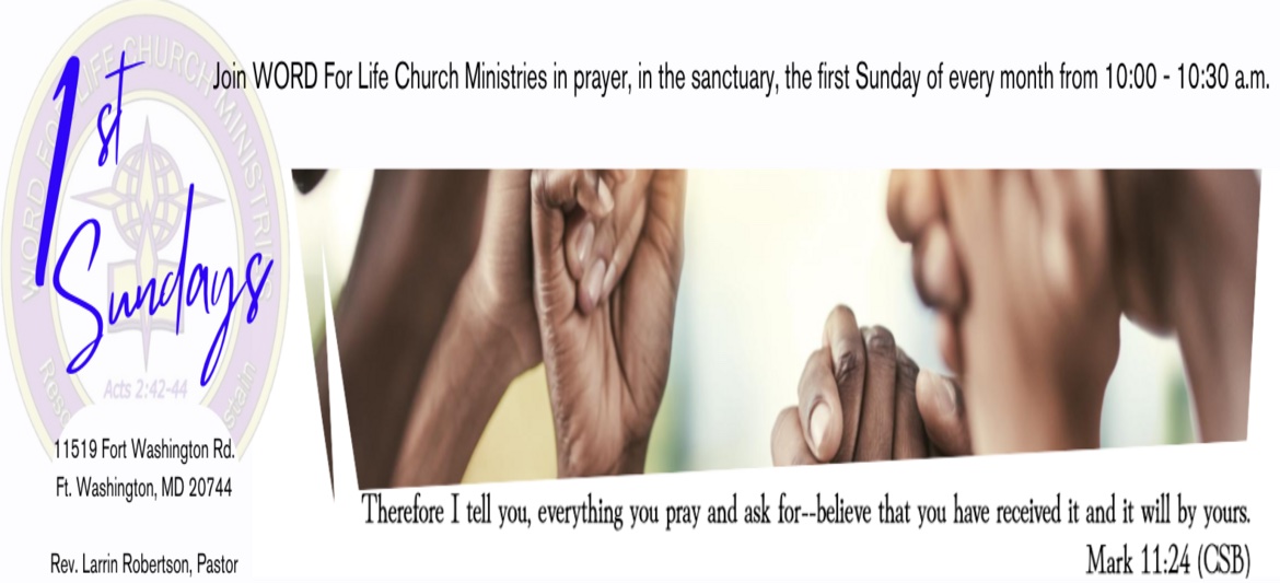 Reverend Larrin Robertson, Pastor  |  Email: admin@wordforlifechurch.org  |  Church phone: (301) 292-2066